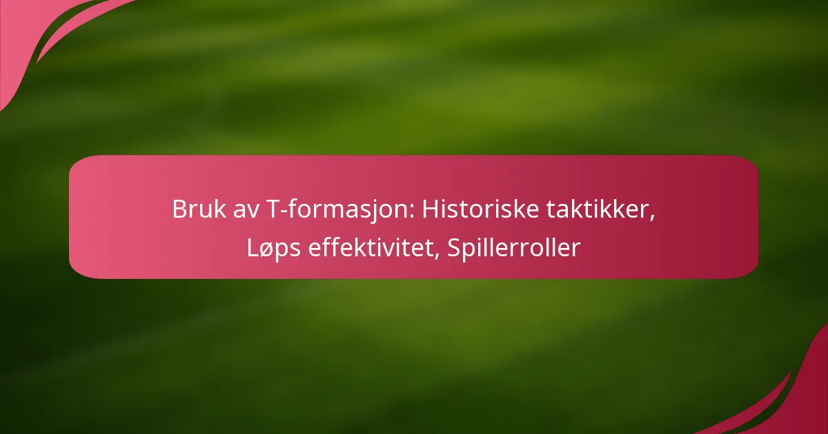 T-Formasjonen er en strategisk fotballoppstilling som legger vekt på spesifikke spillerroller for å maksimere lagets effektivitet. Hver posisjon har distinkte ansvarsområder som bidrar til både offensive og defensive spill, noe som gjør det avgjørende å forstå disse rollene for vellykket implementering.