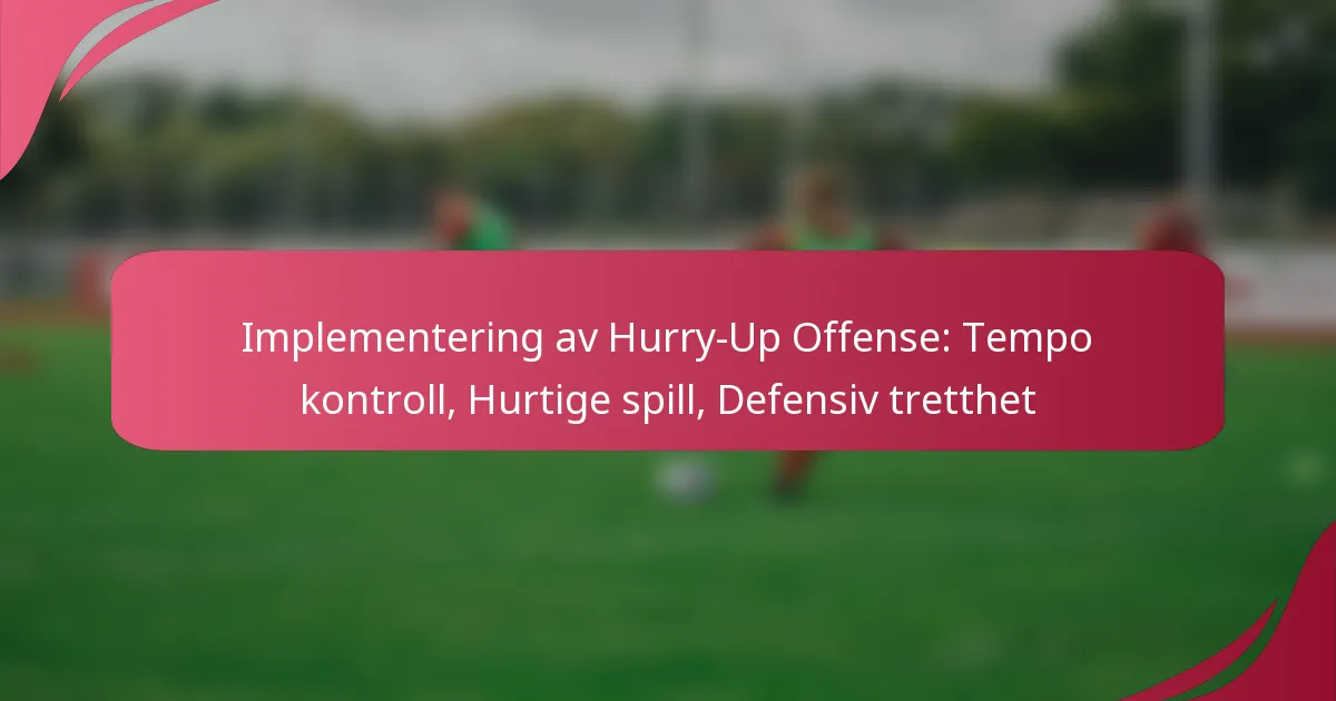 Hurry-up offensiv er en dynamisk strategi i fotball som legger vekt på et raskt spilltempo for å holde forsvaret på hælene. Ved å minimere tiden mellom spill kan lag utnytte defensive svakheter og indusere tretthet, noe som til slutt skaper fordelaktige scoringsmuligheter. Effektiv implementering innebærer rask spillkalling og effektiv kommunikasjon, som gjør at angrepene kan opprettholde kontrollen over spillets tempo.