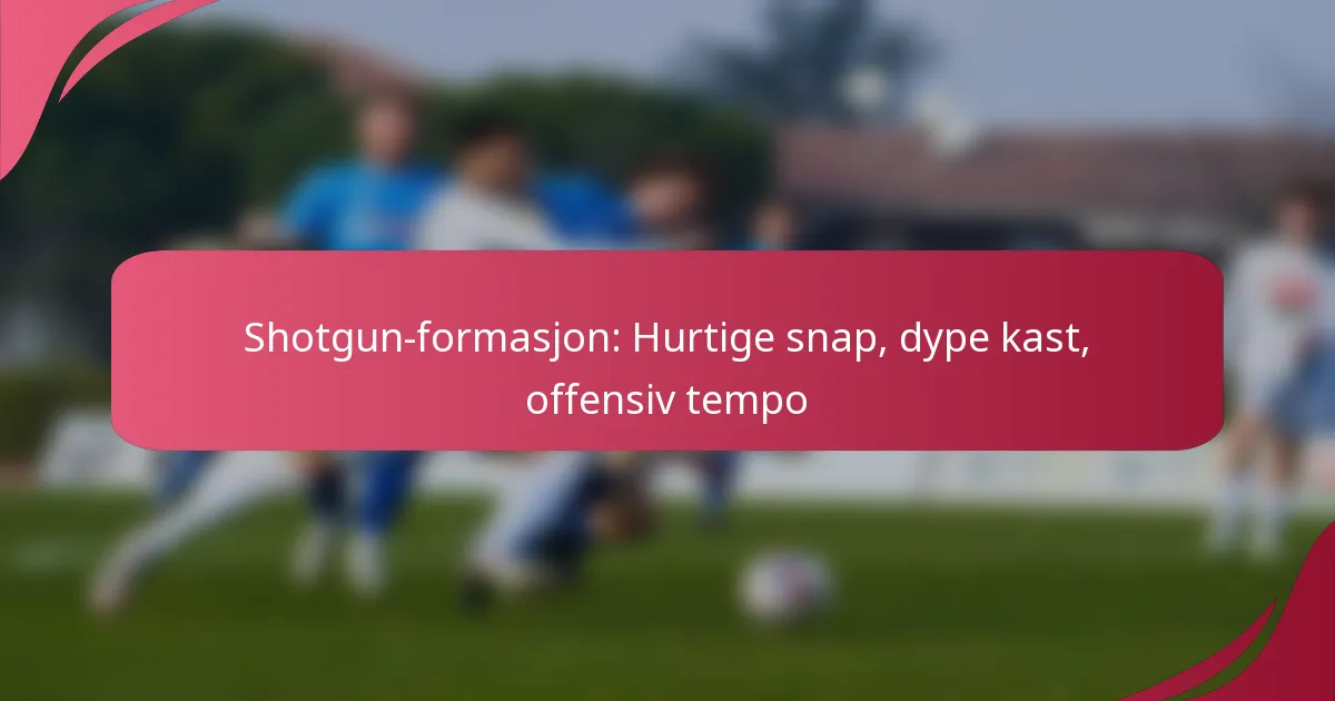 Shotgun-formasjonen er en strategisk offensiv oppstilling i amerikansk fotball som plasserer quarterbacken flere yards bak sentrum, noe som letter raske pasninger og dype kast. Denne oppstillingen forbedrer ikke bare quarterbackens synlighet og reaksjonstid, men øker også det generelle offensive tempoet, noe som muliggjør rask spillutførelse som kan overraske forsvaret. Ved å utnytte raske snaps og dype kast kan lag skape scoringsmuligheter og effektivt utnytte defensive svakheter.